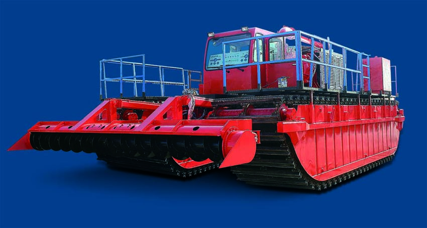 XWQY100型兩棲旋挖式清淤機是應(yīng)用戶要求而專門設(shè)計的一種大型池塘水下清淤機械。該機以浮箱履帶為基礎(chǔ)實施工作移位,用旋挖頭切割和收集水下淤泥,用泥漿泵將泥漿吸走并排出,送到指定的排泥場,從而實現(xiàn)對大型池塘清淤的目的。 該機也可用于其他具有相似條件的河道、溝渠等淺水水域進行清淤作業(yè)。