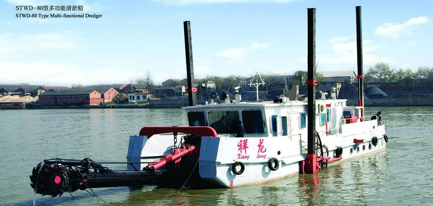 我公司研制的STWD-80多功能清淤船是"十五"期間國(guó)家重大技術(shù)裝備研制項(xiàng)目,通過(guò)部級(jí)鑒定,該船具備水炮沖刷、射流拖淤、斗輪挖泥三種清淤功能,適用于內(nèi)河及潮水泥含量高的江河入海口、港道和堤岸,清淤效果顯著。射、拖、挖裝置共用一套動(dòng)力系統(tǒng),設(shè)備利用率高。